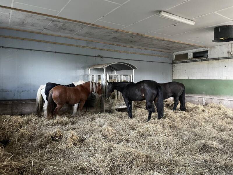 Auf unserem Hof haben wir insgesamt 3 separate Offenställe. Für jede Stallgruppe ist der Weidegang frei wählbar. Da Ponys meistens Rehe gefährdet sind, verzichtet diese Herde komplett auf frisches Gras.